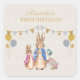 Personalize Peter rabbit beige linen 1st Birthday Square Sticker