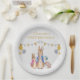 Personalize Peter rabbit gray linen 1st Birthday Paper Plate