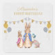 Personalize this Peter the rabbit 1st Birthday design with a child's name and the event.