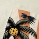 PERSONALIZE THIS BEACH BREEZE & BACKHAND BEACH TOWEL — this bold and tropical caption headlines a vibrant pickleball beach towel that blends vacation vibes with sporty flair. The design features two palm trees with pickleballs as coconuts, set against a radiant backdrop of orange and beige rays. A rustic wooden signboard anchors the centre, while two black paddles cross at the base with a pickleball nestled between them. Whether you're gifting it to a coach, packing it for a vacation at a tourist resort, or showing off your skills at a pickleball club or tournament, this towel brings sunshine, humour, and personality to any event. Ideal for fans, players, and sports lovers who love a breezy backhand. Pickleball beach towel design can be transferred to other similar pickleball gifts and products.