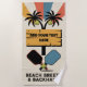 PERSONALIZE THIS BEACH BREEZE & BACKHAND PICKLEBALL BEACH TOWEL — this playful and tropical caption headlines a vibrant pickleball beach towel that blends vacation vibes with sporty flair. The design features two palm trees with pickleballs as coconuts, radiating rays in red, blue, and orange behind them. A rustic wooden signboard anchors the scene, while two crossed paddles (red and blue) and a pickleball rest below, set against a beach-inspired backdrop. Whether you're gifting it to a coach, packing it for a vacation at a tourist resort, or showing off your skills at a pickleball club or tournament, this towel brings sunshine, humour, and personality to any event. Ideal for fans, players, and sports lovers who love a breezy backhand. Pickleball beach towel design can be transferred to other similar pickleball gifts and products.