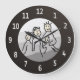 A simple round wall clock where the time circles around you or your beloved ones! Add your personal photo and this clock will transfer into a valuable item for someone you'd like to honor or surprise! The round frame is colored black, and digits are white. There exists 9 color variations of this design - black, blue, pink, purple, lime, orange, white, silver and brass.