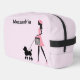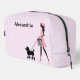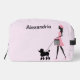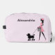 Personalize this woman in pink with a beret walking a black poodle and add a name.