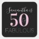 Personalized 50 and fabulous Black Pink Birthday Square Sticker