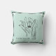 This pillow shows soft mint green color. Smooth, gentle look. Thin, flowing line art design—modern, artistic, quiet beauty.