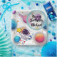 These personalized space-themed paper plates feature a cute astronaut floating among colorful planets, stars, and a magical galaxy background. Perfect for space birthday parties, astronaut themes, and outer space celebrations, these plates add a fun and vibrant touch to your party table.