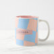 Personalized Baby Blue and Peach Wavy Checkered Two-Tone Coffee Mug