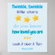Custom triplets nursery wall art for 3 baby boys with a charming “Twinkle, twinkle little stars, do you know how loved you are” theme, designed especially for boys in blue shades. This colorful and friendly poster makes the perfect decoration for a baby boy triplets room. Personalize it with the triplets’ names and date of birth to create a truly unique decor. Designed by Best Baby Gifts - given with love.