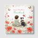 Personalized baby shower Guestbook. Sweet baby girl sitting next to her little puppy dog in a patch of pretty watercolor flowers. There is a sweet sentimental poem on the plate about a baby girl and a puppy starting their life together. Sage green and red wildflowers and butterflies background.