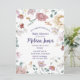 Personalized Baby Shower Invitation for a baby girl with floral border in pink and lavender colors.