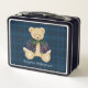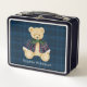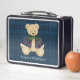 This adorable teddy bear is ready for a cozy adventure! Dressed in a charming tartan plaid coat and a festive green bow tie, he sits proudly against a deep blue plaid background. This design evokes a sense of classic charm and playful warmth, perfect for any child who loves cuddly companions and timeless patterns. Imagine your little one's delight each morning as they pack their favorite snacks in this unique and eye-catching lunchbox, bringing a smile to their face throughout the school day. It's a wonderful way to add a touch of personality and joy to their daily routine.