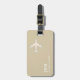 The front side of the tag features a simple and graphic image of a white plane soaring against the beige background, capturing the spirit of adventure and wanderlust. To make it uniquely yours, we offer customization options with your initials and full name elegantly displayed in a timeless serif font. This personal touch not only adds a distinctive flair to your luggage but also makes it easy to identify in a sea of bags.