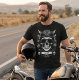 Ride in style with this personalized 2-sided biker t-shirt! Front features a gritty skull helmet; back showcases a vintage motorcycle. Easily customize the name & date. Ultimate grunge gift for motorcycle enthusiasts, riders, dads & husbands. Edgy black & white aesthetic for the road.