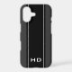 Personalized black iPhone 17 case with monogram. Elegant sleek design for him or her. Cool gift idea for dad, father, uncle, brother, husband, grandpa, friend etc. Monogrammed name letters. Modern typography. Stripe design smartphone cover.