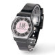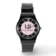 This personalized watch features a refined black and pink bow design paired with an elegant script monogram. Designed for those who appreciate subtle femininity and timeless style, it blends soft contrast with clean typography for a polished look. Ideal for everyday wear, professional settings, or thoughtful gifting, this watch adds a quiet touch of luxury to any collection without feeling overstated.