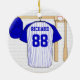 Personalized Blue and White Baseball Jersey Ceramic Tree Decoration