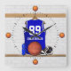 Personalized Blue and White Basketball Jersey Square Wall Clock