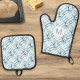 Personalized Blue Floral Stripe Country Kitchen Oven Mitt & Pot Holder Set