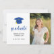 Celebrate your graduate with this modern graduation announcement and party invitation featuring a customizable senior photo, graduation cap icon, and clean elegant typography. This timeless design is perfect for high school or college graduates and can be personalized with the graduate’s name, class year, school, and event details.