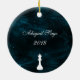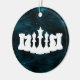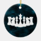 This chess ceramic ornament features a blue nebula design with white chess pieces to include the queen, bishops, knights and rooks.