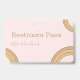 Cute personalized hall pass for students decorated with three boho chic modern neutral rainbows on a pink background. Customize the template with the title of the card and the teacher name. The template will update on both sides of the card. The back of the card has the room number and school name information in addition to the hall pass name and teacher name. Colors in this design are tan browns and pink. Add this hall pass to your elementary school or middle school classroom accessories. Design by Ms_Jade.