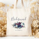 Personalized Bridesmaid Floral Navy Blue Purple Tote Bag