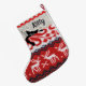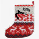 Make sure your kitty gets in on the holiday fun with this custom cat Christmas stocking! Featuring a festive red knit-style pattern with reindeer details, a playful black cat peeking over the cuff, and cute paw prints, this stocking is designed to celebrate your feline friend in style.