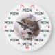 Every hour is "meow" hour with this charming personalized wall clock! Designed specifically for feline enthusiasts, this clock replaces traditional numbers with playful "MEOW" text, accented by tiny pink hearts, green paw prints, and cute ear and whisker illustrations.