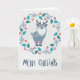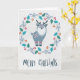 Celebrate the magic of the holidays with this elegant reindeer Christmas card, featuring a charming reindeer centered within a festive greenery wreath and the heartfelt message “Merry Christmas” and includes space for personalized names or a custom message.