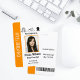 Make your team stand out with this eye-catching vertical ID badge design that features a bold orange vertical accent bar for a modern pop of color and clear team identification. The main white section offers high contrast, ensuring the employee photo and all essential text—name, title, and ID details—are perfectly clear. This layout also cleverly incorporates dedicated space for your company's logo and up to three small accreditation or certification icons above the photo for a professional finish.
