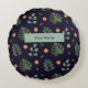 Add a personal touch to your home décor with this elegant personalized botanical round pillow. Featuring a rich navy blue background with soft green leaves and delicate floral accents, this nature-inspired design is customized with a name for a thoughtful, one-of-a-kind accent. The round shape adds visual interest and pairs beautifully with sofas, beds, or reading chairs. Perfect for modern botanical interiors, this custom floral pillow makes a lovely gift for housewarmings, birthdays, or anyone who appreciates refined, personalized home décor.