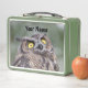 Personalized Cute Wide-Eyed Owl Metal Lunch Box