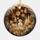 Bring warmth and wonder to your holiday tree with this golden winter wonderland Christmas ornament. Featuring a stunning 3D-look design, this ornament captures a magical snowy scene - a cheerful snowman surrounded by glistening trees, twinkling stars, and intricate detailing. The dimensional design gives the illusion of depth and light, making it a standout piece that shimmers beautifully among your holiday lights. The back of the ornament offers a refined personal touch - elegantly customized with your family name and year in classic gold typography on a deep, rich background. A perfect balance of elegance and festive charm, this keepsake is sure to become a treasured part of your Christmas tradition.