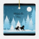 This holiday Christmas ceramic ornament features two silhouette horses Dashing Through the Snow under the light of a full moon. -