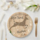 Personalized doe Christmas bauble wooden backgroun Paper Plate