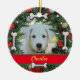 Include your four legged family member in your festivities with this personalized round ceramic ornament. Area for photo and name customization. Photo framed by a bone-laden wreathe for that canine touch. Two-sided brilliant finish design.