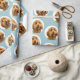 Featuring a repeating pattern of your pet’s adorable face on a soft pastel blue background, this custom gift wrap is perfect for dog lovers who want something truly unique.