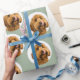 Wrap your gifts in something truly special with this personalized dog photo wrapping paper, featuring your pet’s face in a clean repeating pattern on a calming sage green background. Designed for modern pet lovers, this minimalist gift wrap blends warmth, charm, and timeless style.