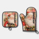 Personalized Dusty Santa Red tartan Merry Holidays Oven Mitt & Pot Holder Set