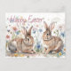 Personalized Easter Bunnies And Floral Watercolor Postcard