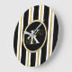 Personalized Elegant Black & Gold Stripes Monogram Large Clock