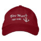 A dynamic personalized First Mate cap in nautical red and white style embroidered hat sure to make an impression on, or off the boat. Make this nautical star anchor design embroidery as unique as you are with your name, your location, or your boat's name.