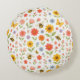 Add a cheerful, personal touch to your space with this personalized floral bee round pillow. Featuring a whimsical garden pattern of colorful watercolor flowers and buzzing bees, this design brings a bright, happy feel to nurseries, bedrooms, playrooms, or cozy reading nooks.