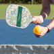 Play with confidence and style using this personalized floral pickleball paddle. Featuring a vibrant botanical pattern of pink, blue, and yellow blooms set against lush greenery, this paddle brings a touch of cheerful, preppy elegance to the court. The deep green name band across the center adds a clean, tailored look while showcasing a personalized name in refined script for a custom finish. Perfect for casual games, social matches, or gifting, this paddle blends eye-catching design with practical playability, making it a stylish standout for pickleball lovers of all levels.