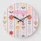 Personalized folk scandinavian floral pattern large clock