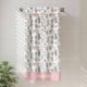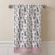 This bath towel design is complete with a seamless pattern of green trees and pink hearts set against a white background. There is a place to add your name at the bottom of the towel.