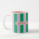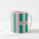 Personalized Fresh Green and Pink Striped Retro Two-Tone Coffee Mug
