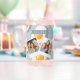 Review of 3-photograph "can" drinking glass with customer-provided photographic images & text.