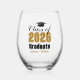 Personalized Gold Black Class of 2026 Graduation Stemless Wine Glass