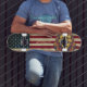 Skating is about having fun, and there is something for everyone in our skateboard range. A fabulous skateboard guaranteed to raise a smile! . Show your American pride or give a special gift with this USA American Flag skateboard in a distressed worn grunge design on wood . This united states of America flag skateboard design with stars and stripes in red white and blue. Have fun with your personal message-.skating the streets and skatepark, or cruising.